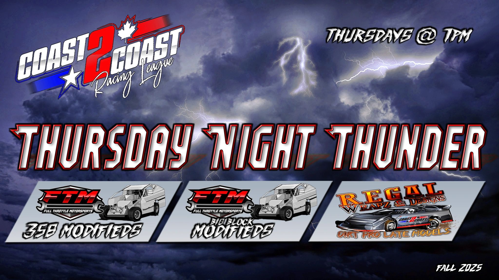 Thursday Night Thunder features the ground pounding, earth shattering, window rattling Dirt Modified beasts of the Northeast along with the Pro Late Models.